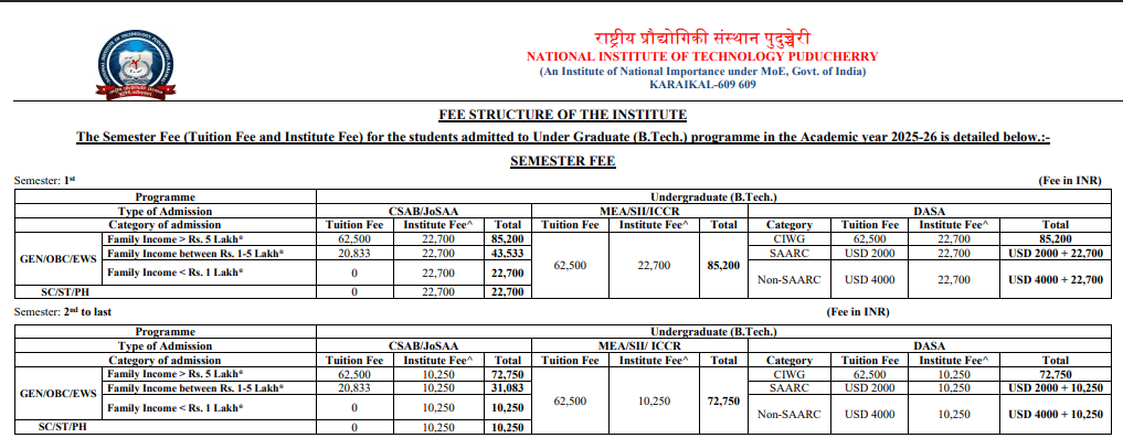 | NIT Puducherry | ₹ 5.94 Lakhs |