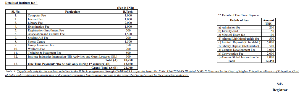 - For SC/ST category students, the total fees is ₹ 94,450.