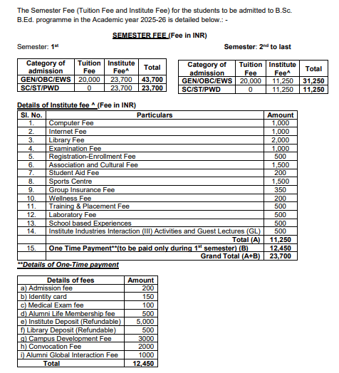 Earlier, B.Sc + B.Ed fees at NIT Puducherry was ₹ 2.14 Lakhs (in 2024) for the entire course duration. This shows a fee increase of ₹ 48,000 over the year.