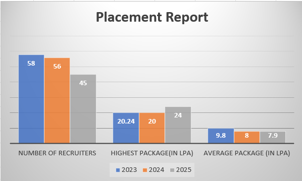 The college demonstrates a robust placement record with an average placement rate of 70-90% depending on the batch. The average salary packages range from INR 5-8 LPA, with the highest packages reaching up to INR 44 LPA. Notable recruiters include IT and core companies such as Samsung, L&T, IBM, and Snapdeal.