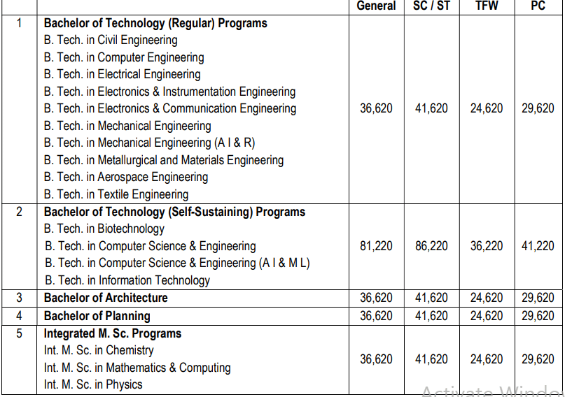 The university offers an affordable fee structure, charging INR 32,400 per semester and INR 45,400 annually, inclusive of all fees and without extra lab or development charges. Fees can be paid online twice a year. SC and ST students face a slightly higher annual fee of INR 55,400. Various government scholarships, like E Medhaburti and a laptop distribution scheme, are available, with the TFW scheme aiding financially weaker students. Admission through OJEE counseling requires a INR 10,000 deposit.