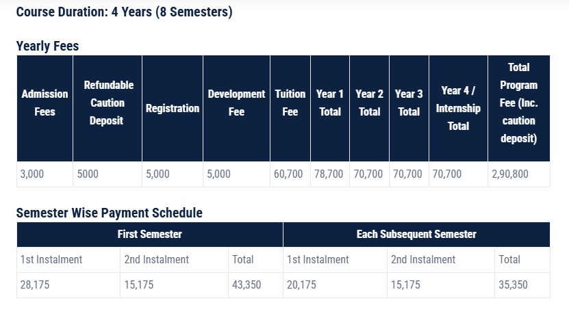 - This includes a total tuition fee of ₹ 2 Lakhs, Other Fees of ₹ 48,000.