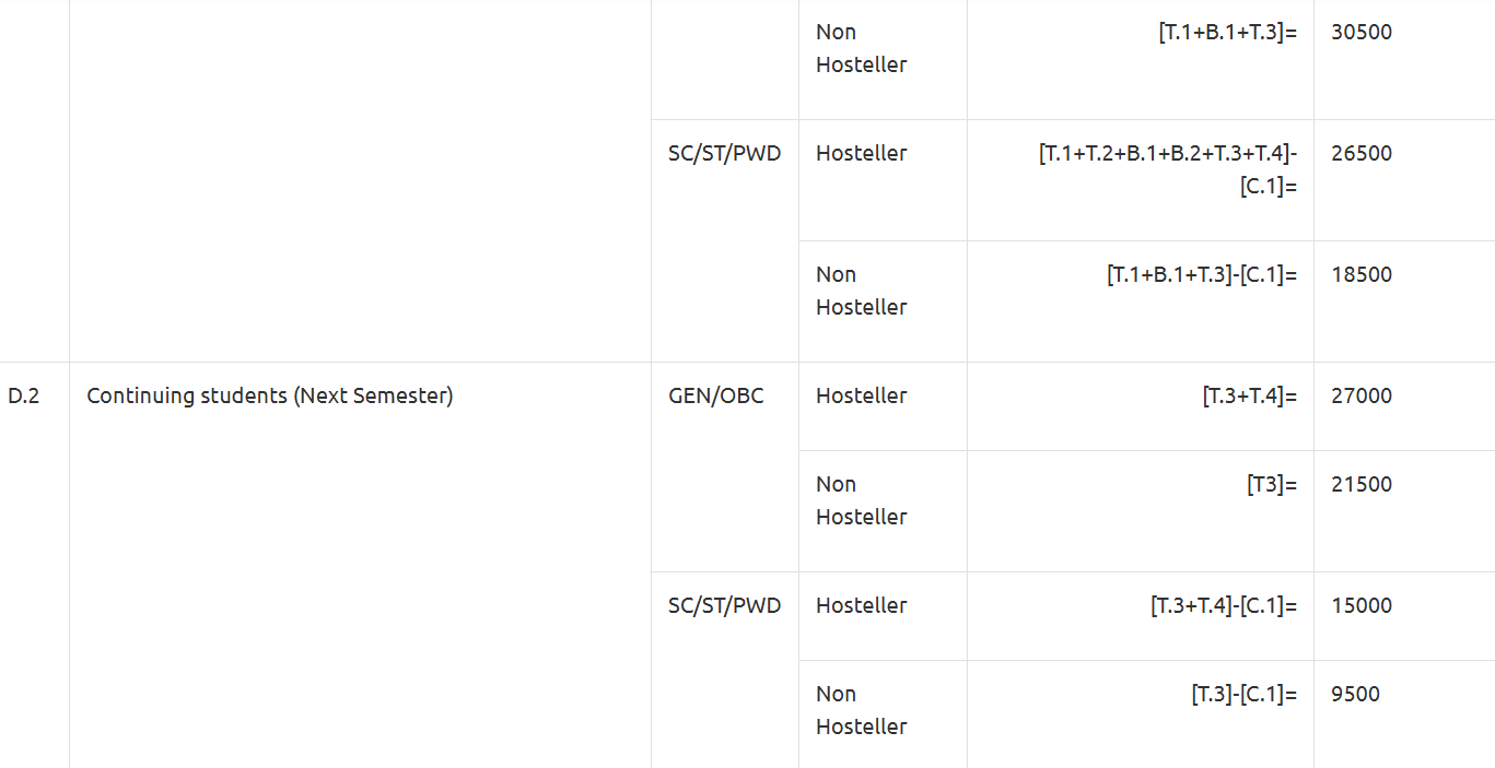 - For SC/ST category students, the total fees is ₹ 85,000.