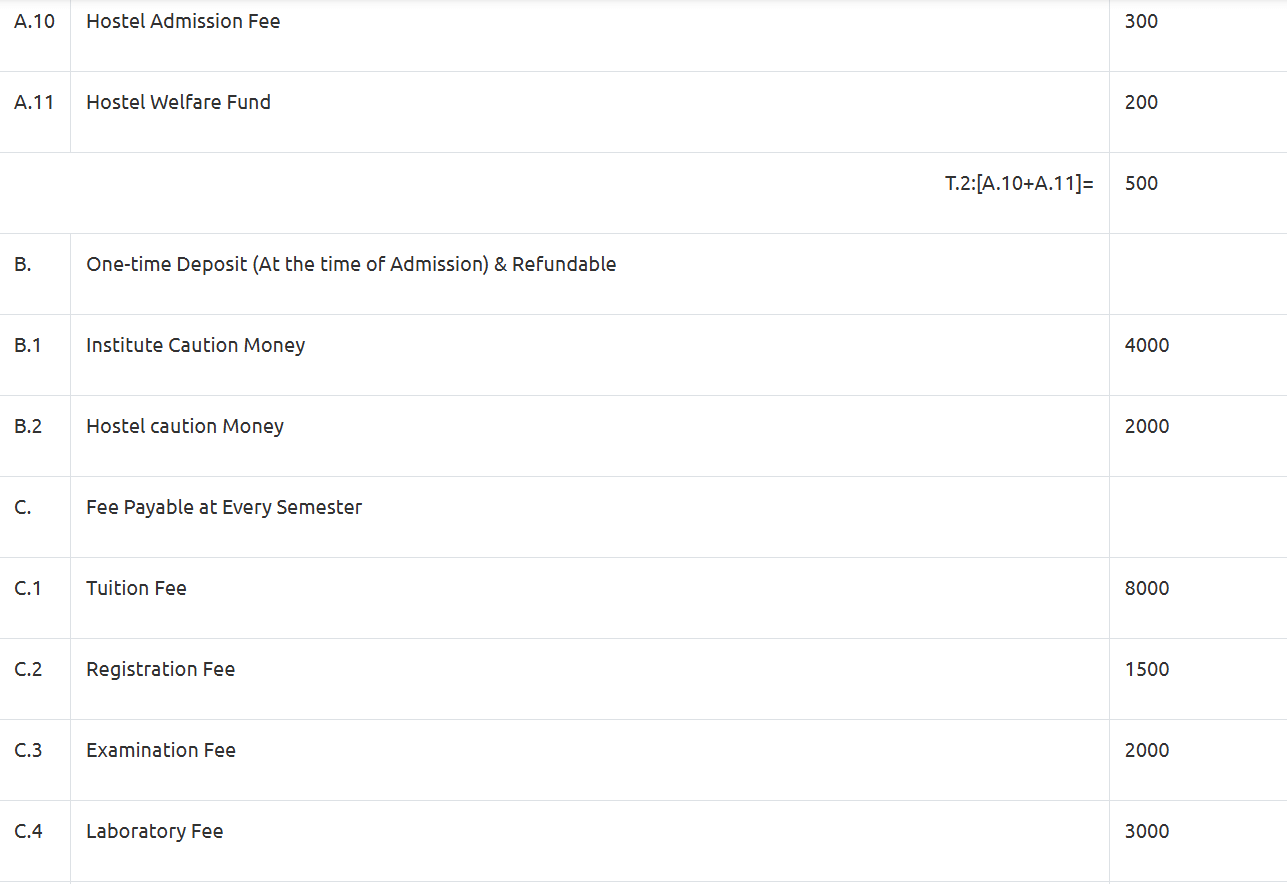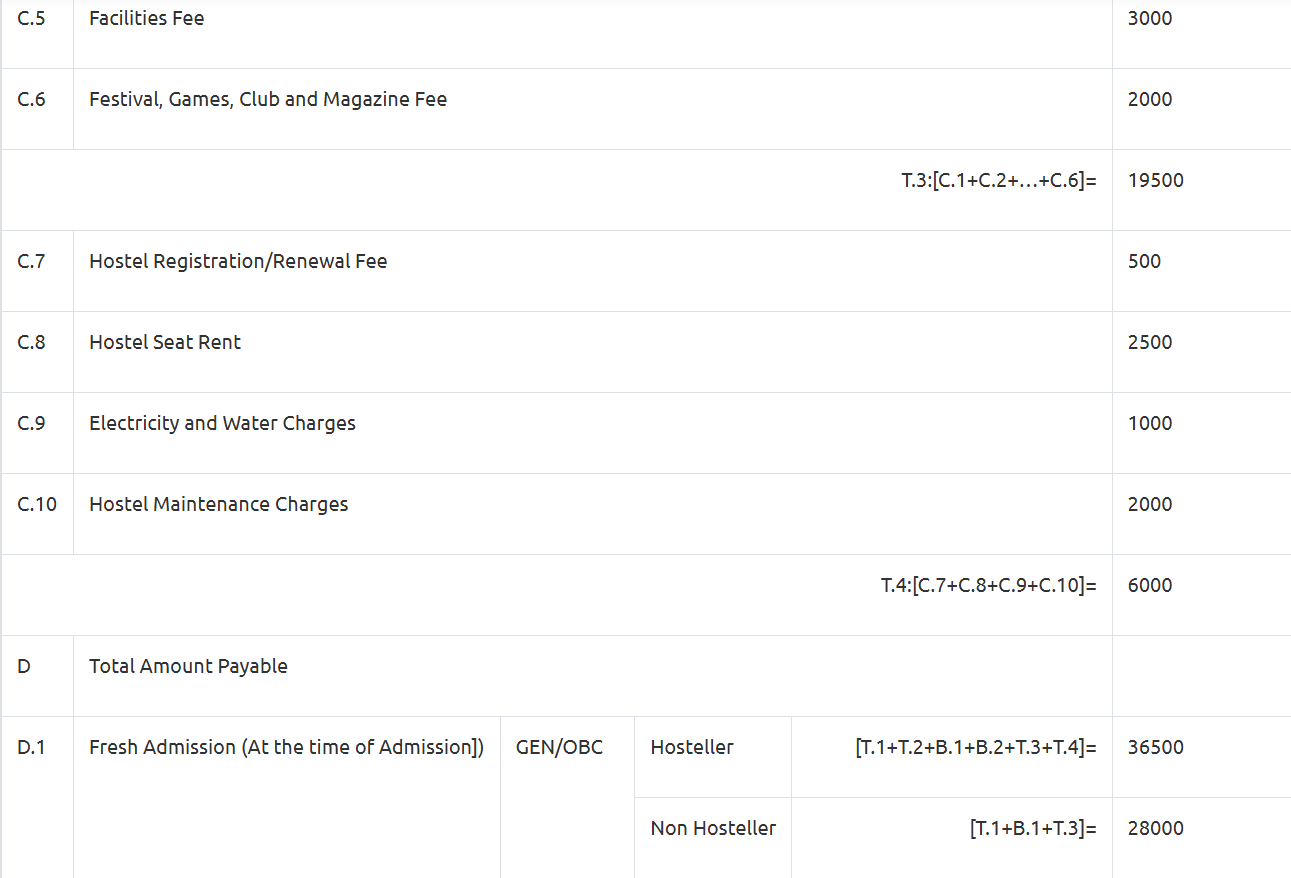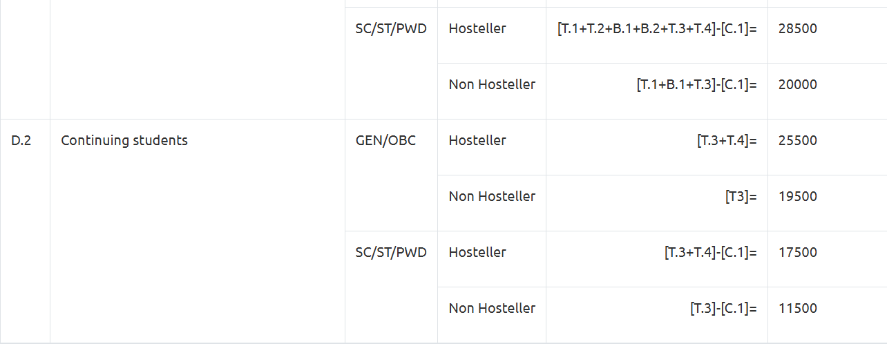 - For SC/ST category students, the total fees is ₹ 54,500.