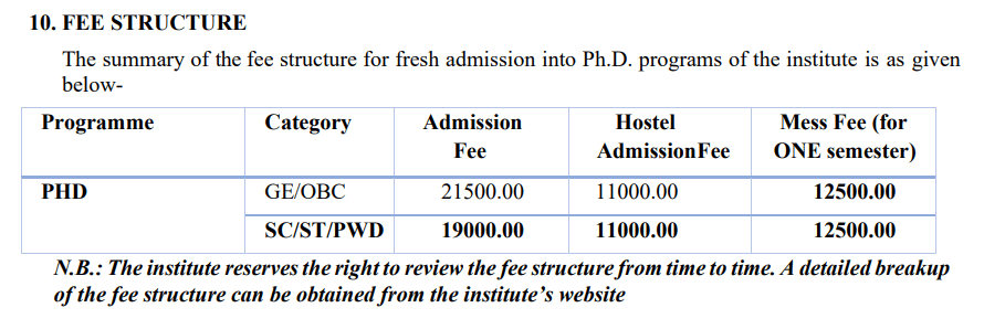 CIT Kokrajhar Ph.D Instrumentation Engineering fees 2025 is ₹ 2.11 Lakhs for the entire course duration.
