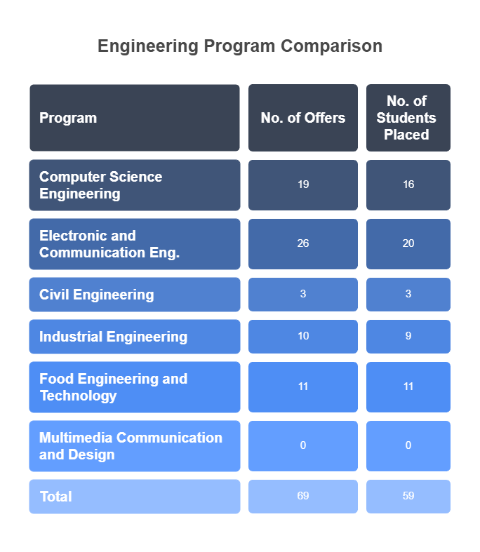 Placement opportunities are generally stronger for branches like CSE, ECE, and Food Engineering Technology. Despite challenges such as the college's remote location impeding company visits, the training and placement cell actively strives to enhance placements. Additionally, students often rely on off-campus placements and government job opportunities. Internship opportunities, although limited on-campus, are facilitated through collaborations with entities like NTPC, IOCL, and various IITs.