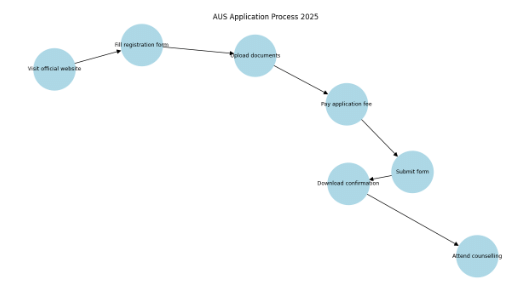 Ans. The application fee is only INR 500 for all programs and must be paid online through the AUS official web portal. This fee is non-refundable and must be paid before submitting the application form. Payment can be by credit card, debit card, or online banking.