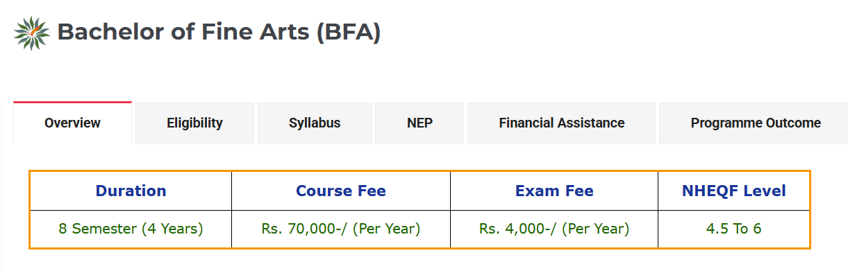 | Date of Admission Without Late Fee for Session 2025-26 [BFA] | Apr 01, 2025 - Jul 31, 2025 |