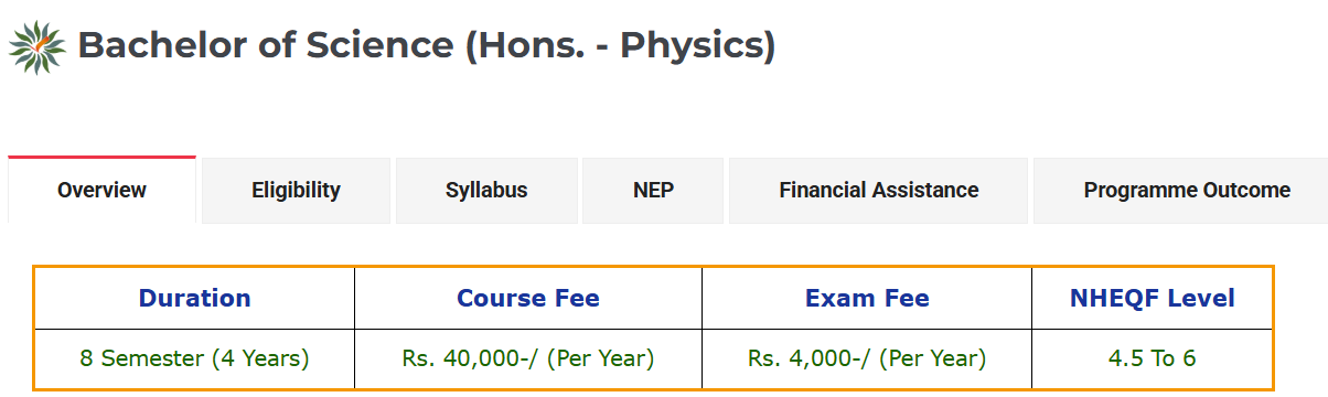 | Date of Admission With Late Fee for Session 2025-26 [B.Sc] | Aug 01, 2025 - Aug 30, 2025 |