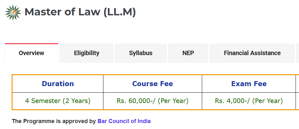 | Date of Admission Without Late Fee for Session 2025-26 [LLM] | Apr 01, 2025 - Jul 31, 2025 |