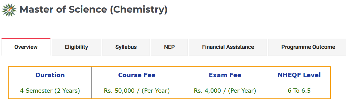 | Date of Admission Without Late Fee for Session 2025-26 [M.Sc] | Apr 01, 2025 - Jul 31, 2025 |