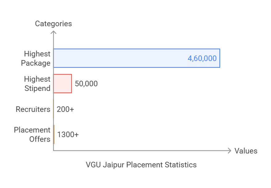 VGU Jaipur Placements 2024 ended on an impressive note. The VGU Jaipur highest package was offered at INR 46 LPA. More than 200 companies participated in the placement drive, offering 200+ jobs. The highest stipend offered to an intern was INR 50,000 Per Month. Leading recruiters here included Oracle, Tech Mahindra, TATA, IBM, Wipro, PayTM, LinkedIn, and Google.