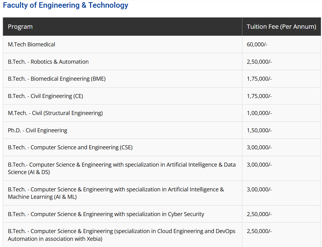 | SRM University Sonepat | ₹ 2.57 Lakhs |