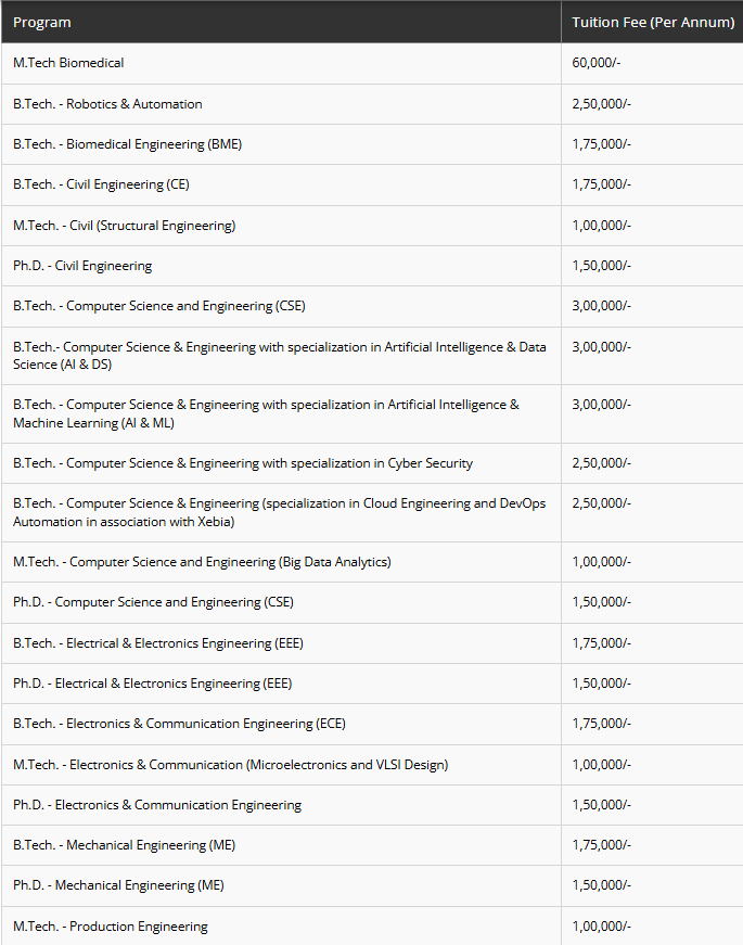 - This includes a total tuition fee of ₹ 4.5 Lakhs, Caution Fees of ₹ 10,000, Other Fees of ₹ 10,000.