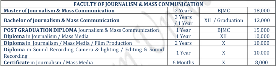 Himalayan University Itanagar BAJMC Journalism and Mass Communication is offered as 3 Years Full Time program. The minimum eligibility criteria for BAJMC is 10+2. The total fees for Himalayan University Itanagar BAJMC Journalism and Mass Communication in 2025 is ₹ 42,000 for the complete course duration, which includes total tuition fees of ₹ 36,000.