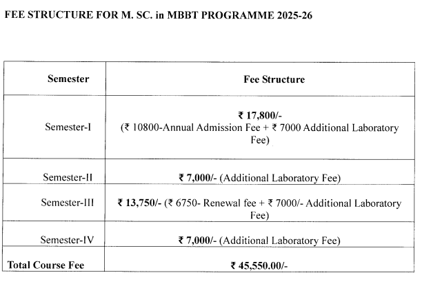 Cotton University Guwahati M.Sc Molecular Biology and Biotechnology Previous Fees
