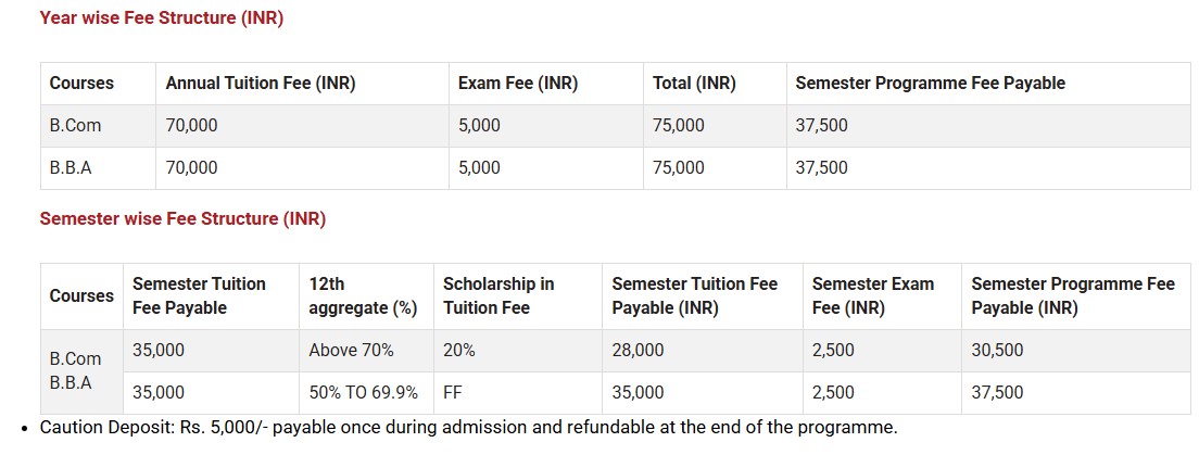 | Fees | Year 1 (in INR) | Year 2 (in INR) | Year 3 (in INR) |