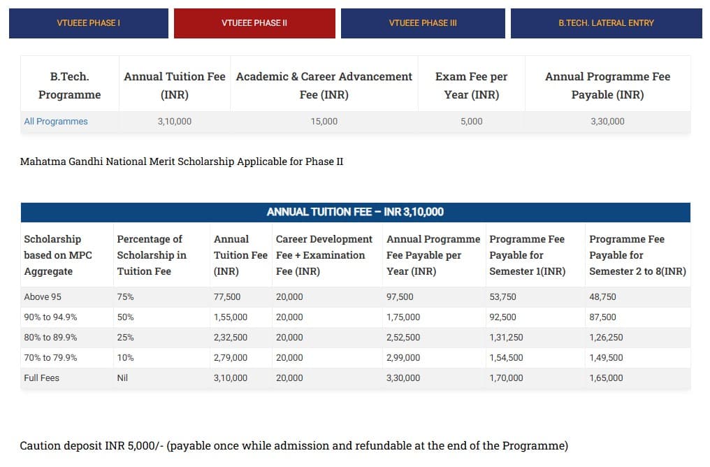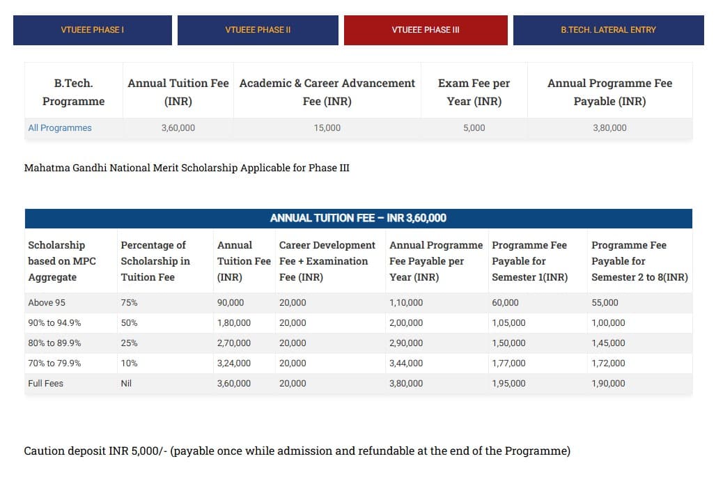 - This includes a total tuition fee of ₹ 14.4 Lakhs, Caution Fees of ₹ 5,000, Other Fees of ₹ 60,000.