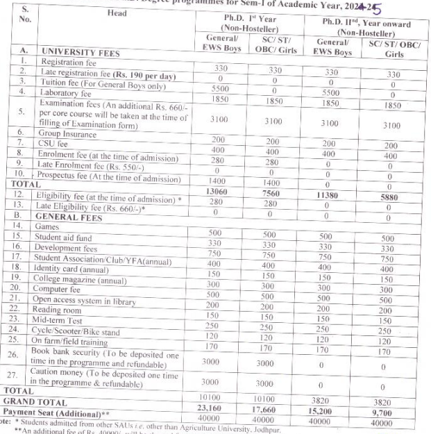 Agriculture University Jodhpur Ph.D Agronomy Fees