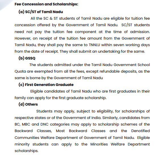 04 Nov, 2025 TNNLU has released the Fee Structure 2026-27 for various L.L.M Corporate And Securities Law programs. The total academic fee is ₹ 1.22 Lakhs.