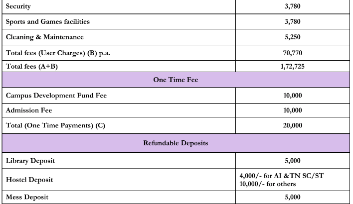 | Fee Type | Total Amount (INR) |