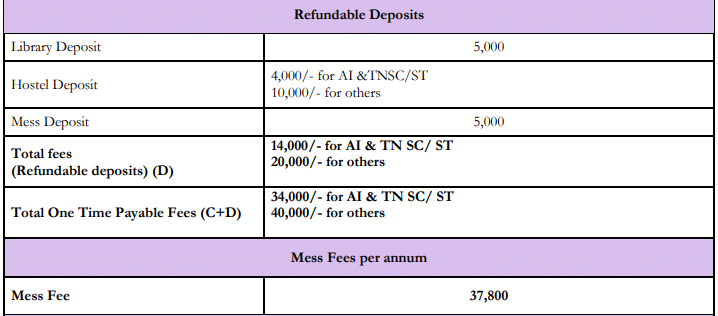 The hostel at TNNLU is mandatory due to its status as a residential college situated on the outskirts of the city. Rooms initially accommodate three students, transitioning to two per room in the final years. Facilities include Wi-Fi, air conditioning, a water cooler with 24/7 cold water, washing machines, and a mess within the hostel. Separate accommodations exist for males and females, with guest rooms available for parents. The hostel fee is incorporated into the overall tuition, eliminating additional costs.