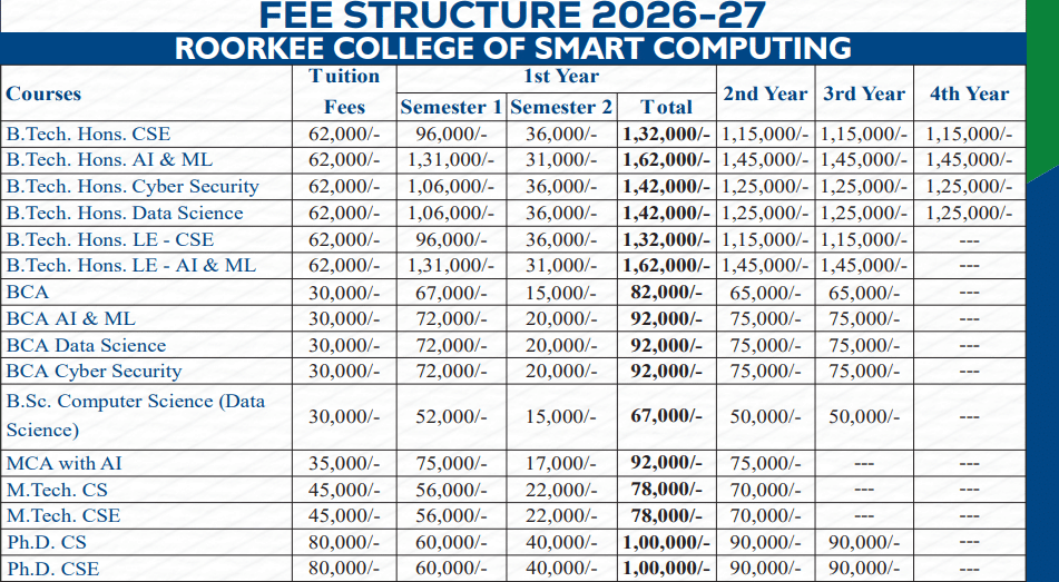 Earlier, BCA Cyber Security fees at Haridwar University was ₹ 2.42 Lakhs (in 2025) for the entire course duration. This shows that the fee has remained unchanged since 2025.