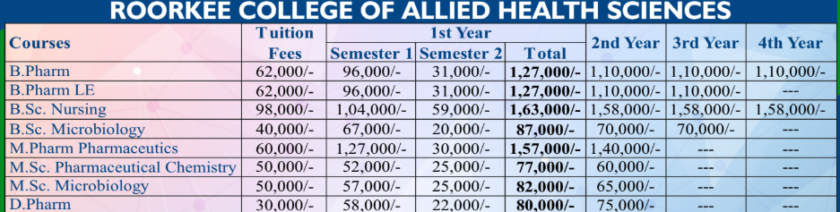Multinational companies like Accenture and Infosys recruit from RCE. Pharmacy graduates have an average package of INR 3.5 lakh per annum. Students can start campus placements from the sixth semester and internships in the third year. Haridwar University, connected to RCE, provides free internships for final-year students, enhancing their career readiness. The college offers a comprehensive scholarship program based on merit and economic need, including full scholarships for top performers and awards for those achieving high academic percentages.