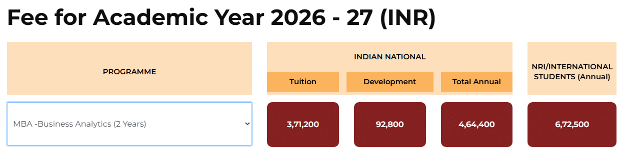 - The total fees for MBA Business Analytics is ₹ 9.41 Lakhs.