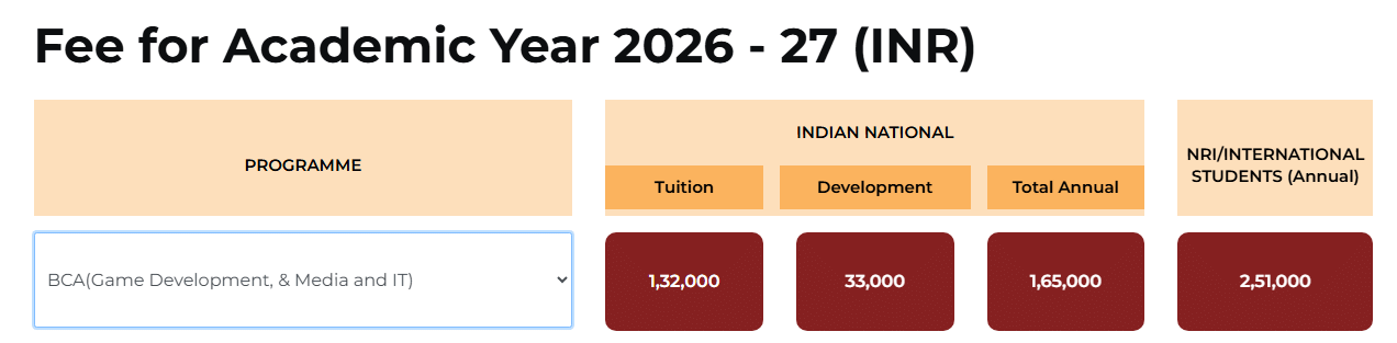 - The total fees for BCA Game Development is ₹ 5.08 Lakhs.