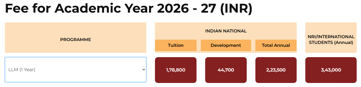 - The total fees for L.L.M Corporate Law is ₹ 2.35 Lakhs.