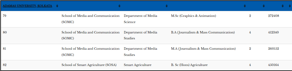 Earlier, BAJMC {Hons.} Journalism and Mass Communication fees at Adamas University Kolkata was ₹ 4.05 Lakhs (in 2025) for the entire course duration. This shows a fee increase of ₹ 7,000 over the year.