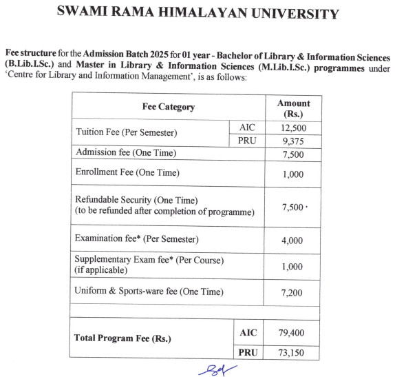 SRHU B.Lib.I.Sc fees 2025 is ₹ 56,200 for the entire course duration.