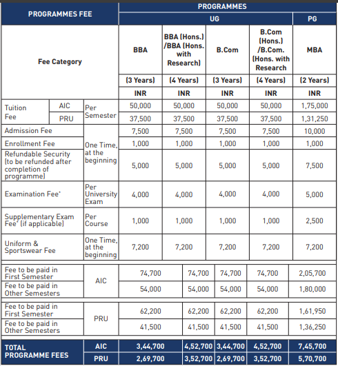 | Fee Type | Total Amount (INR) |