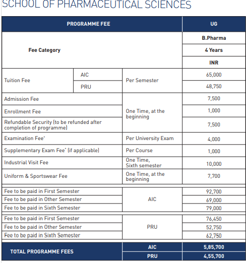 | Fees | Year 1 (in INR) | Year 2 (in INR) | Year 3 (in INR) | Year 4 (in INR) |