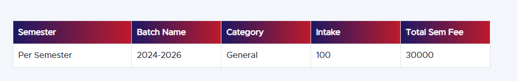 | Semester Wise Fees | ₹30000 | ₹30000 | ₹30000 | ₹30000 |