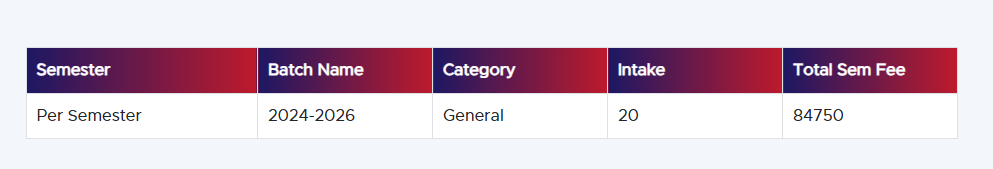 | Semester Wise Fees | ₹84750 | ₹84750 | ₹84750 | ₹84750 |