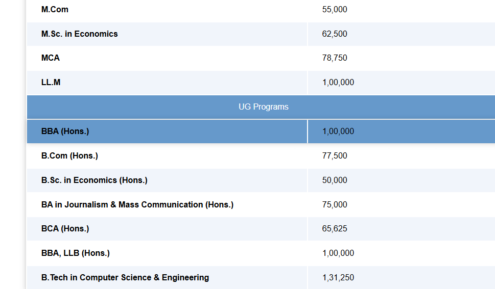 Earlier, MCA fees at Birla Global University Bhubaneswar was ₹ 3 Lakhs (in 2025) for the entire course duration. This shows a fee increase of ₹ 46,000 over the year.