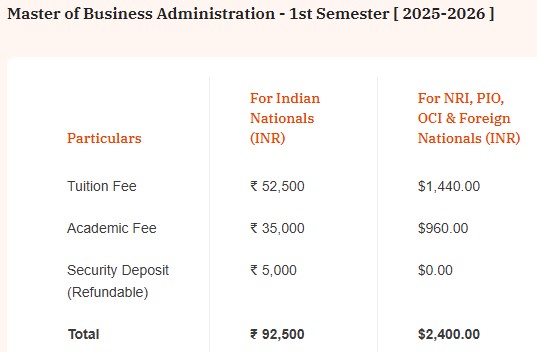 | Fees (2025 - 2026) | Year 1 (in INR) | Year 2 (in INR) | ||