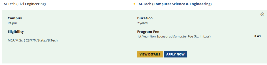| Amity University Raipur | ₹ 1.72 Lakhs |