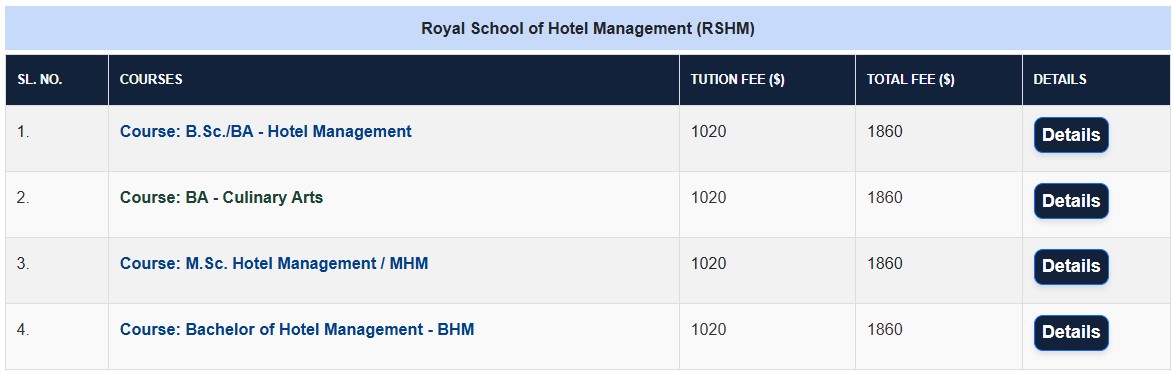 15 Nov, 2025 Royal Global University Guwahati B.Sc Hotel Management Fee Structure 2026-27 has been released. The total academic fee is ₹ 3.36 Lakhs.