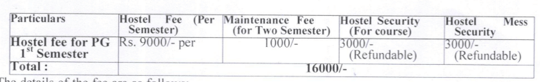 The university offers hostel facilities for both boys and girls, with separate hostels accommodating approximately 900 boys and 400 girls. The rooms, which are newly constructed and well-furnished, accommodate three to four students each, providing beds, tables, chairs, and almirahs. The hostel mess serves four meals a day, although the food quality is often criticized. Hostel fees are Rs 1,500 per month, with an additional mess fee of Rs 2,400 to Rs 3,500 per month.