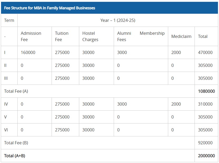 - The total fees for MBA Family Managed Business is ₹ 16.76 Lakhs.