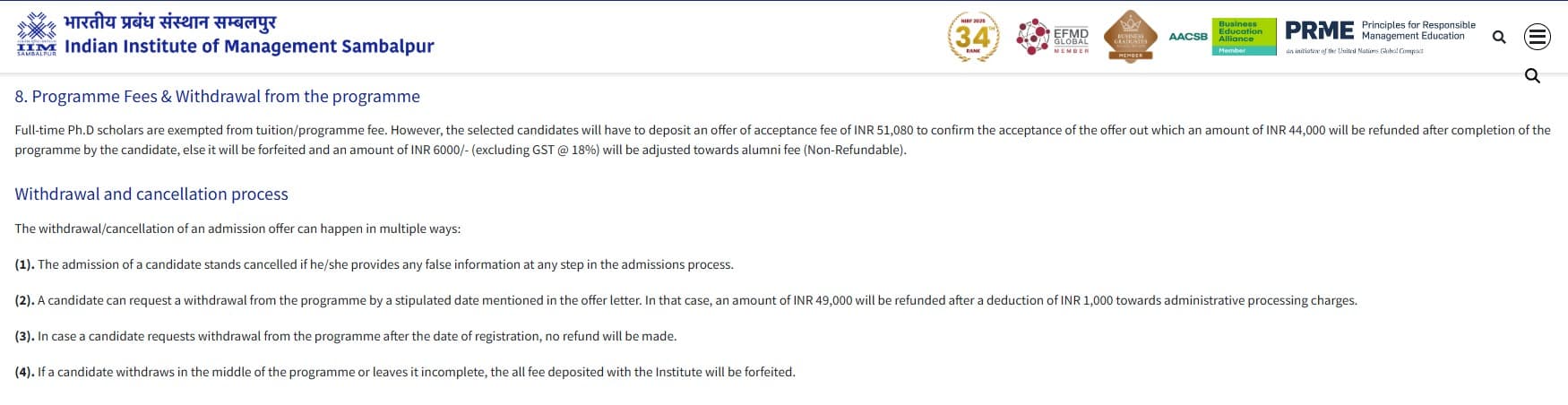 Earlier, Ph.D fees at IIM Sambalpur was ₹ 50,780 (in 2025) for the entire course duration. This shows a fee increase of ₹ 300 over the year.