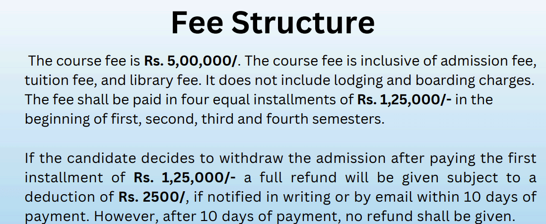 - Candidates need to pay ₹ 2.5 Lakhs in the first year.