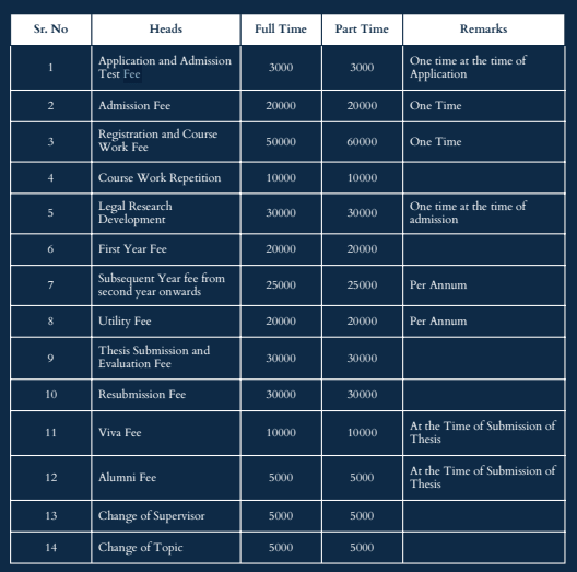 - The total fees for Ph.D Law is ₹ 2.85 Lakhs.