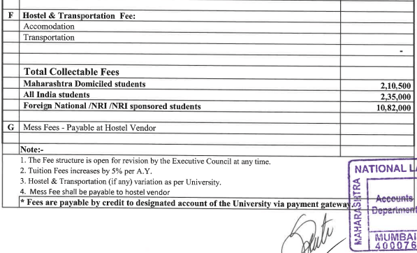 | MNLU Mumbai | ₹ 2.35 Lakhs |