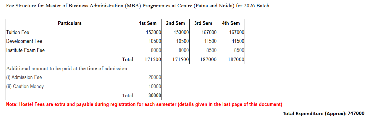 Earlier, MBA fees at BIT Noida was ₹ 3.74 Lakhs (in 2025) for the entire course duration. This shows a fee increase of ₹ 3.73 Lakhs over the year.