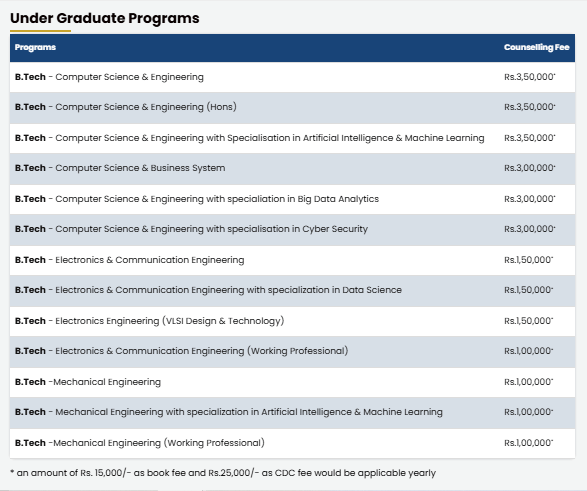 | College | B.Tech Electronics & Communication Engineering Total Fees |