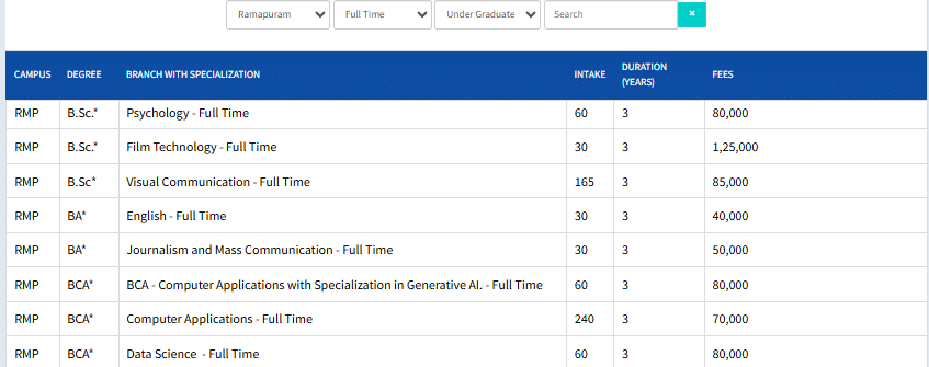| SRM University (Vadapalani Campus) | ₹ 2.79 Lakhs |